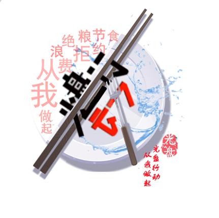 设计元素:餐盘、筷子、刀叉、水滴。作品描述:餐盘、筷子、刀叉都是日常饮食不可或缺的器具,筷子和刀叉构成“光盘行动”笔画的一部分寓意光盘行动从筷子刀叉出发,夹走所有食物不造成点滴浪费。洁白的餐盘上溅起的水滴不带一丝油污才是真正的光盘。餐盘的一半由“节约粮食,拒绝浪费,从我做起”等字样构成起到时刻提醒人们“光盘行动、人人有责”的作用。谁知盘中餐、粒粒皆辛苦,节约粮食,拒绝浪费,光盘行动,从我做起。