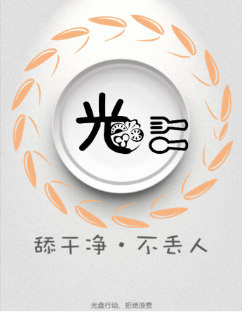 周围是一圈成熟澄黄的稻壳,代表农民伯伯辛辛苦苦种出的稻谷,里面的米粒已被取出食完,体现珍惜粮食的理念。中间是一个盘子,盘子里面有食物有刀叉,还有一个“光”字,代表着用刀叉把食物吃光。“光”字和盘子结合起来就是光盘。“舔干净◆不丢人”就是珍惜粮食,拒绝浪费。总的来说,我们应该尊重劳动,勤俭节约,珍惜每一粒粮食,坚守“粮”心,从贵医神奇开始!
